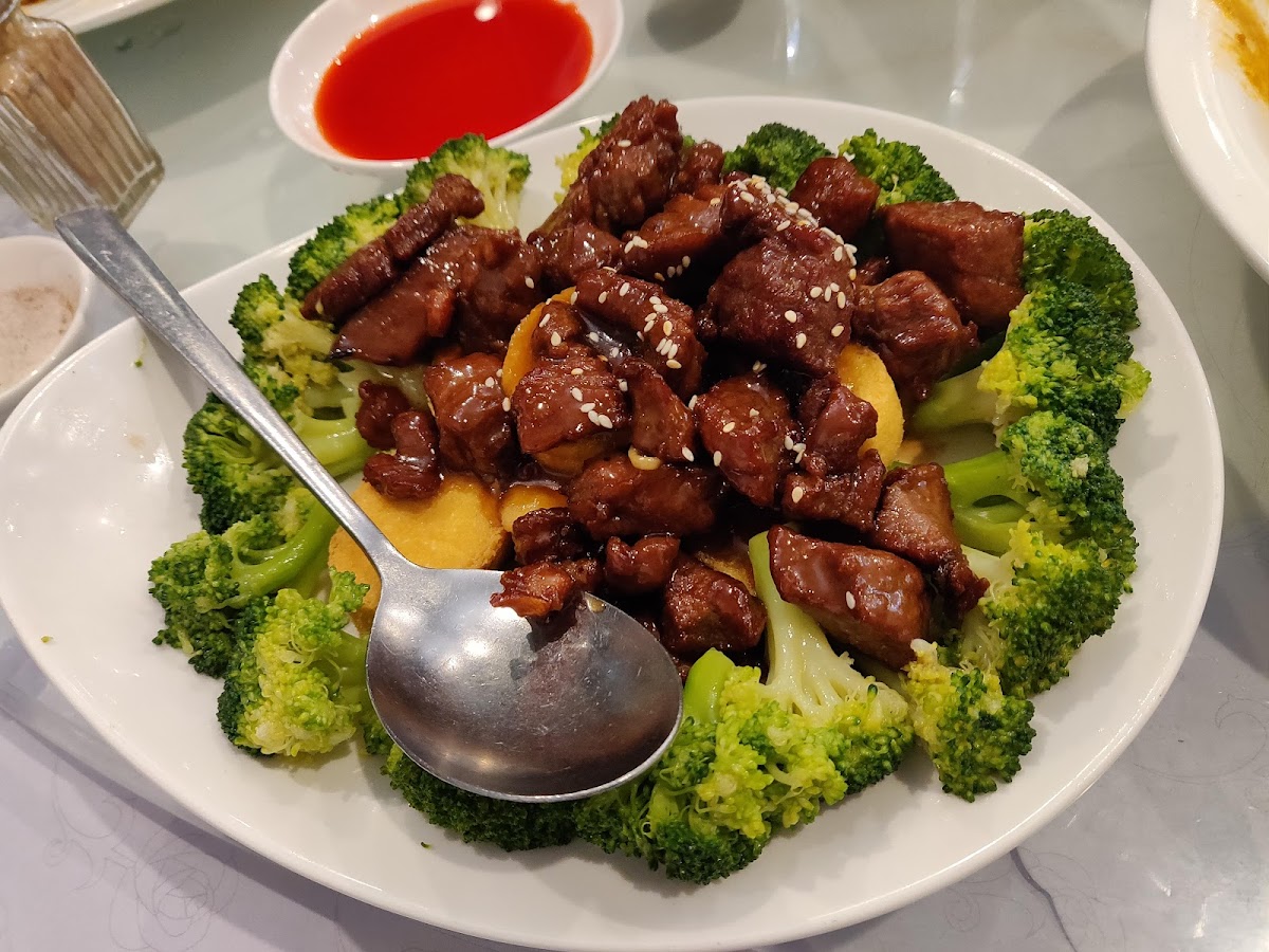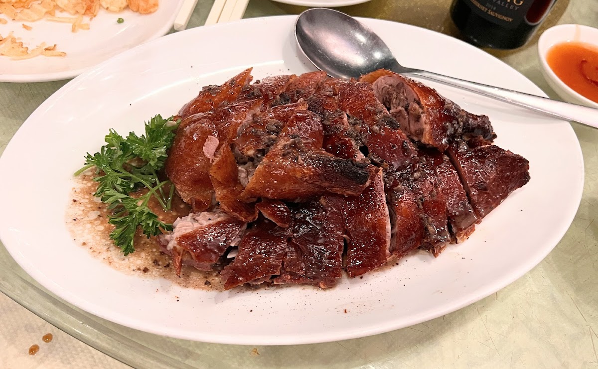 On the dim sum front, the menu features classics like shrimp har gow, siu mai (though some find the fillings a bit lightly seasoned), chicken feet in mixed sauces, and sticky glutinous rice dumplings. There are also notable mains like the crispy skin roasted duck and preserved vegetables braised fish that bring a heartier dimension to the meal. Traditional side dishes like Chinese broccoli with oyster sauce and more indulgent choices such as Portuguese egg custard and crispy BBQ pork buns round out an extensive, if somewhat restrained, flavor profile.