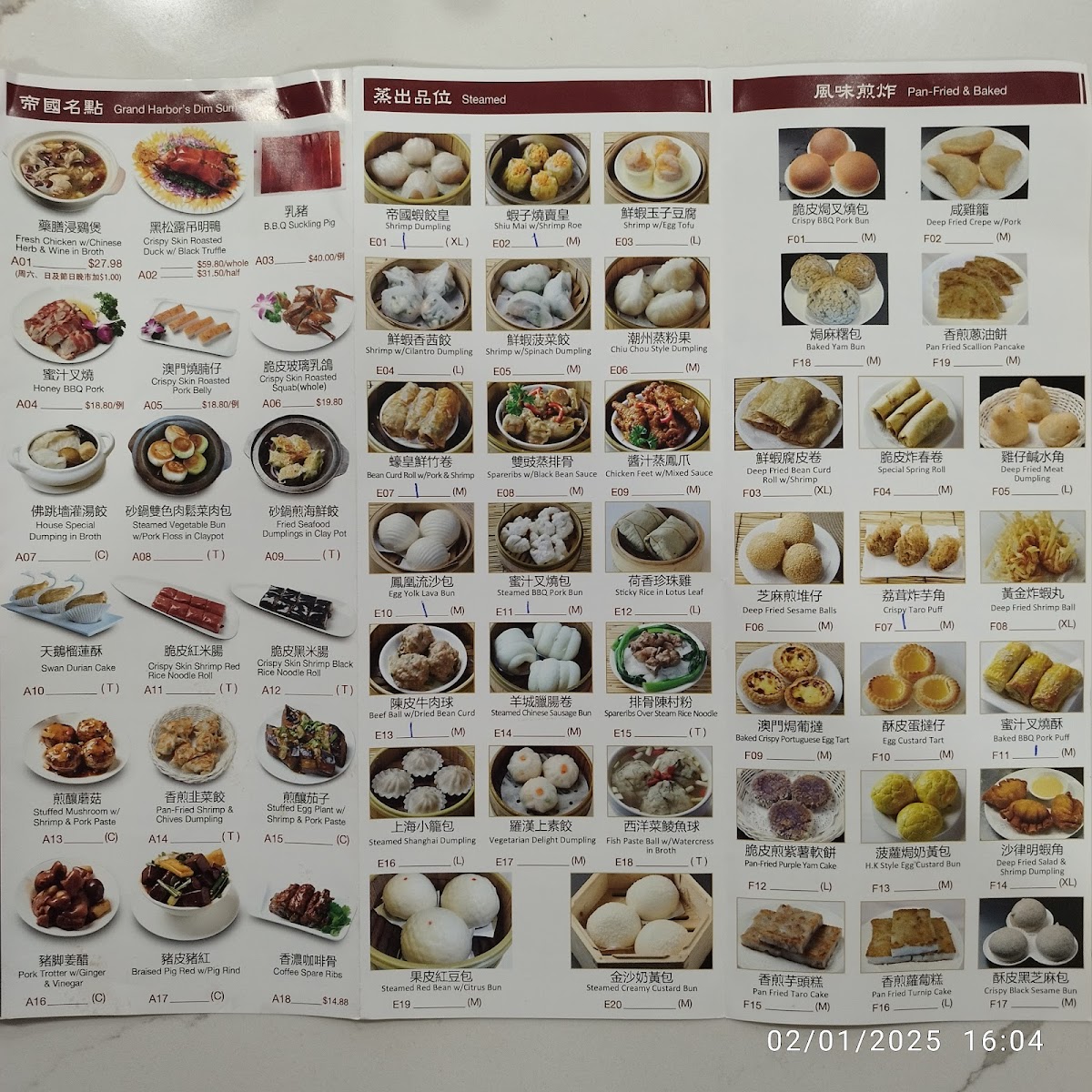 Grand Harbor Seafood and Dimsum Restaurant Menu